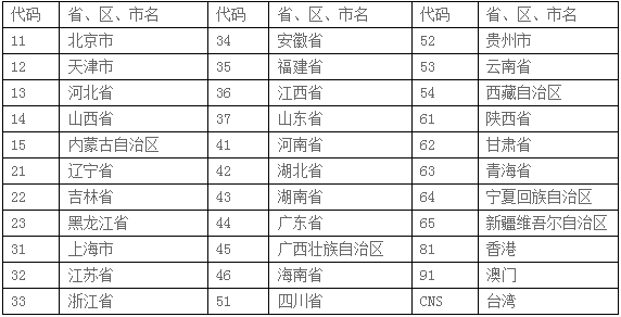 ③地方標(biāo)準(zhǔn) 其代號(hào)為漢語(yǔ)拼音字母“DB”加上省、自治區(qū)、直轄市行政去劃代碼前兩位數(shù)再加上斜線,組成強(qiáng)制性地方標(biāo)準(zhǔn)代號(hào),再加上“T”,組成推薦性地方標(biāo)準(zhǔn)代號(hào),省、自治區(qū)、直轄市代碼見(jiàn)下表: